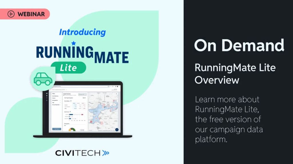 On Demand: RunningMate Lite Overview Learn more about RunningMate Lite, the free version of our campaign data platform. https://youtu.be/tNVA2rIPxq0 RunningMate is a powerful data visualization tool built for political campaigns, PACs, and advocacy groups. RunningMate Lite helps you plan your campaign (in some cases, before you even file!) with real voter data to help you […]